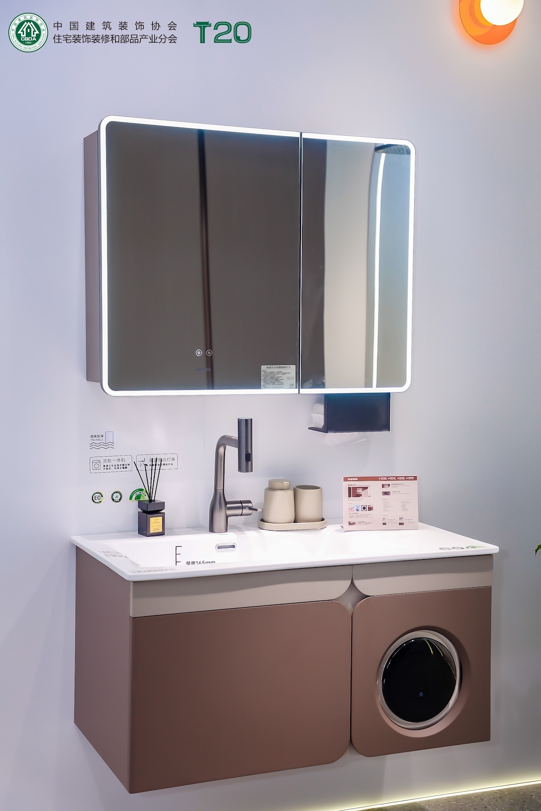 锦柔系列洗烘一体浴室柜,创新嵌入洗烘一体机,专注贴身及小件衣物洗护,避免混洗困扰;镜柜环绕光、科学分区收纳模块、E0级环保板材与持久抗菌表面,兼顾美观与健康,特别适合母婴家庭使用,打造安心绿色的家居环境。